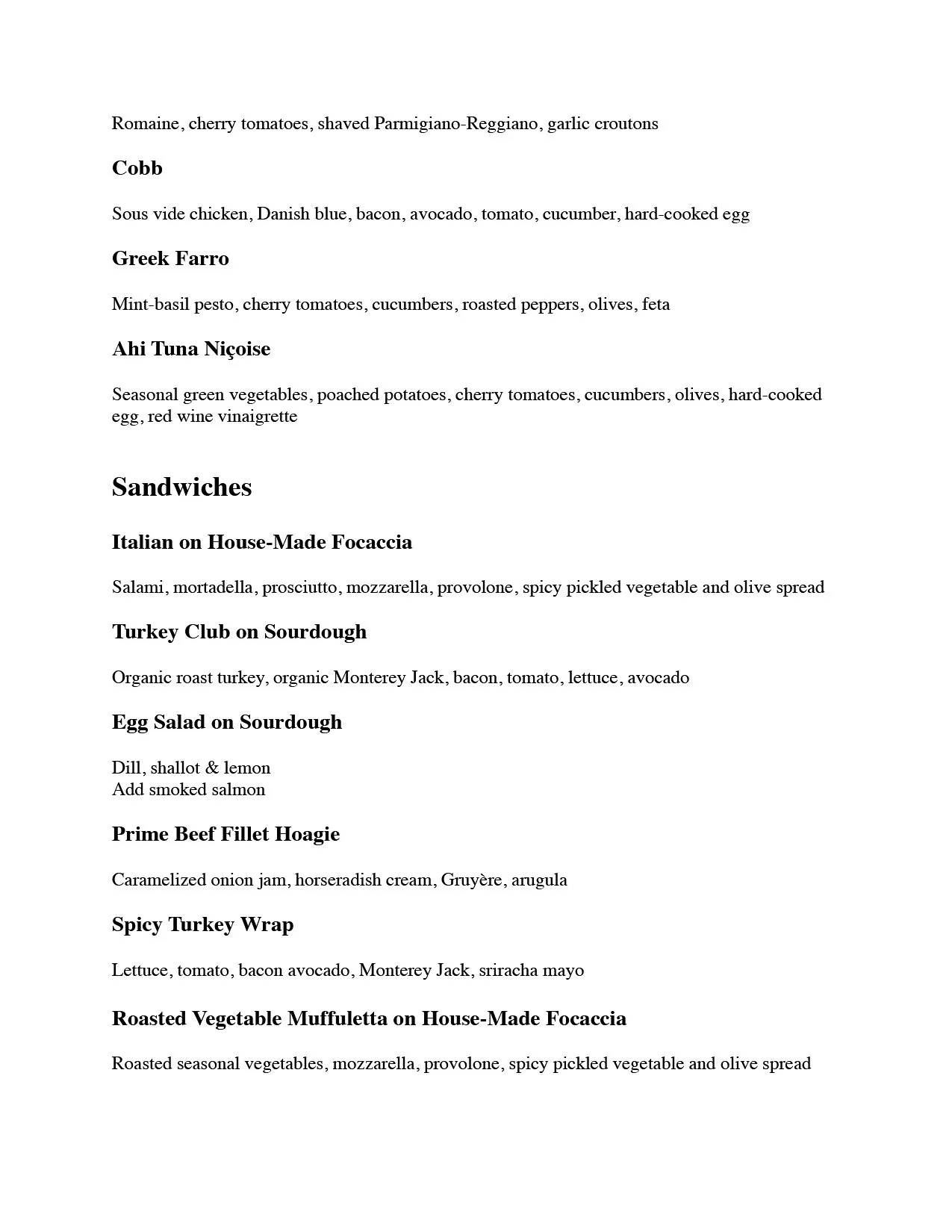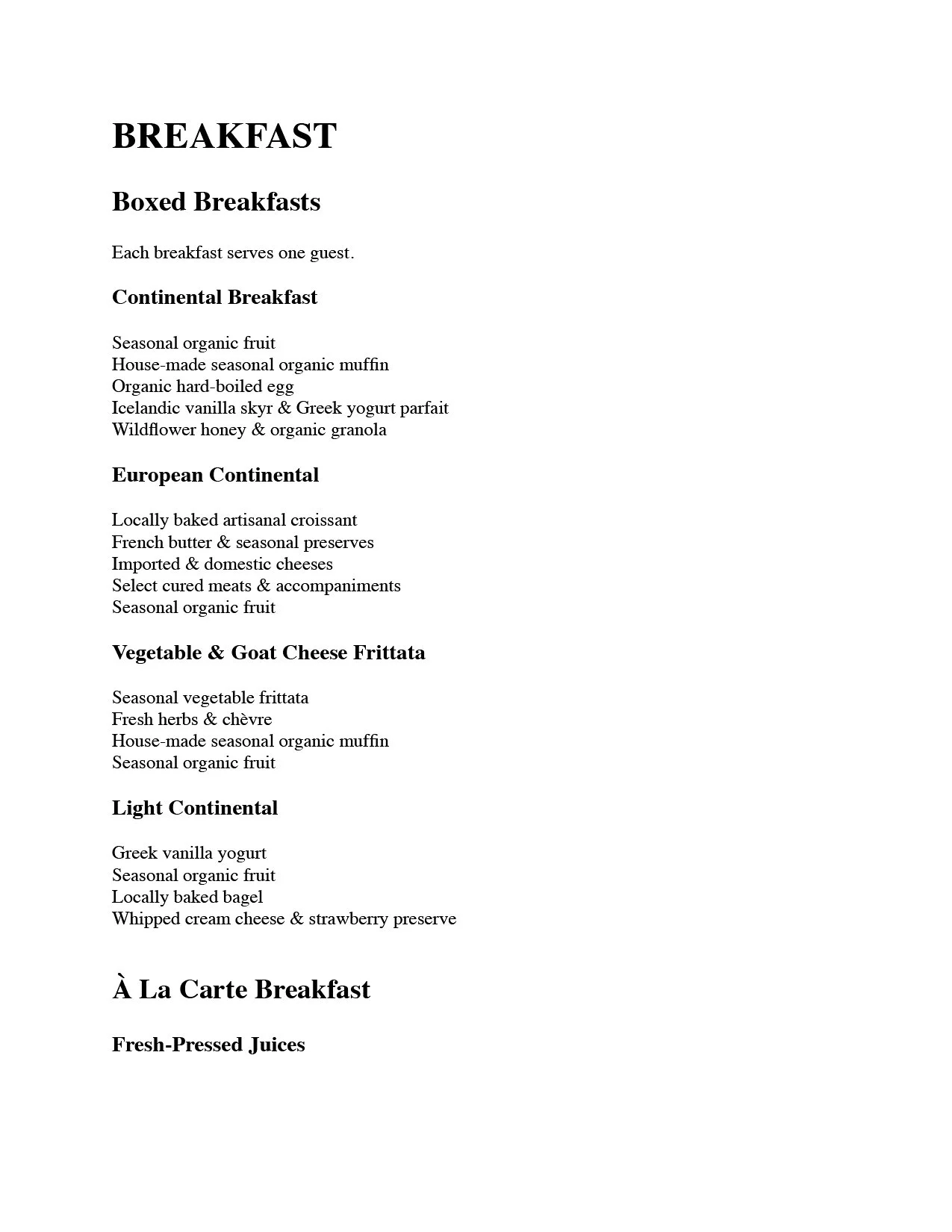 Our menu.